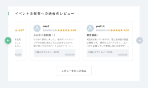 第4回「八海山スカイスノー」2026のレポート写真を公開しました 2026 3/07 第4回「八海山スカイスノー」2026のレポート写真をフォトページで公開いたしました。 ご参加いただいた選手のみなさまは、ベストショットを探してみてください! フォトページを見る お知らせ URLをコピーする URLをコピーしました! レビューコメントありがとうございます! 関連記事 レビューコメントありがとうございます! 2026年3月6日 お詫び《エキスパートリザルト訂正》 2026年3月5日 第4回「八海山スカイスノー」2026の公式結果です 2026年3月1日 【予定通り開催】第4回「八海山スカイスノー」2026 2026年2月28日 出場選手の紹介です《スタートリスト2026》 2026年2月16日 【大会特別価格1,000円】応援ロープウェー運行決定!夜景と感動のゴールを特等席で。 2026年2月14日 小中高生を全員無料招待への想い|ビギナーカテゴリー(トライアルの部) 2026年1月29日 2026年大会は「2月28日(土)」開催決定! 2025年6月27日